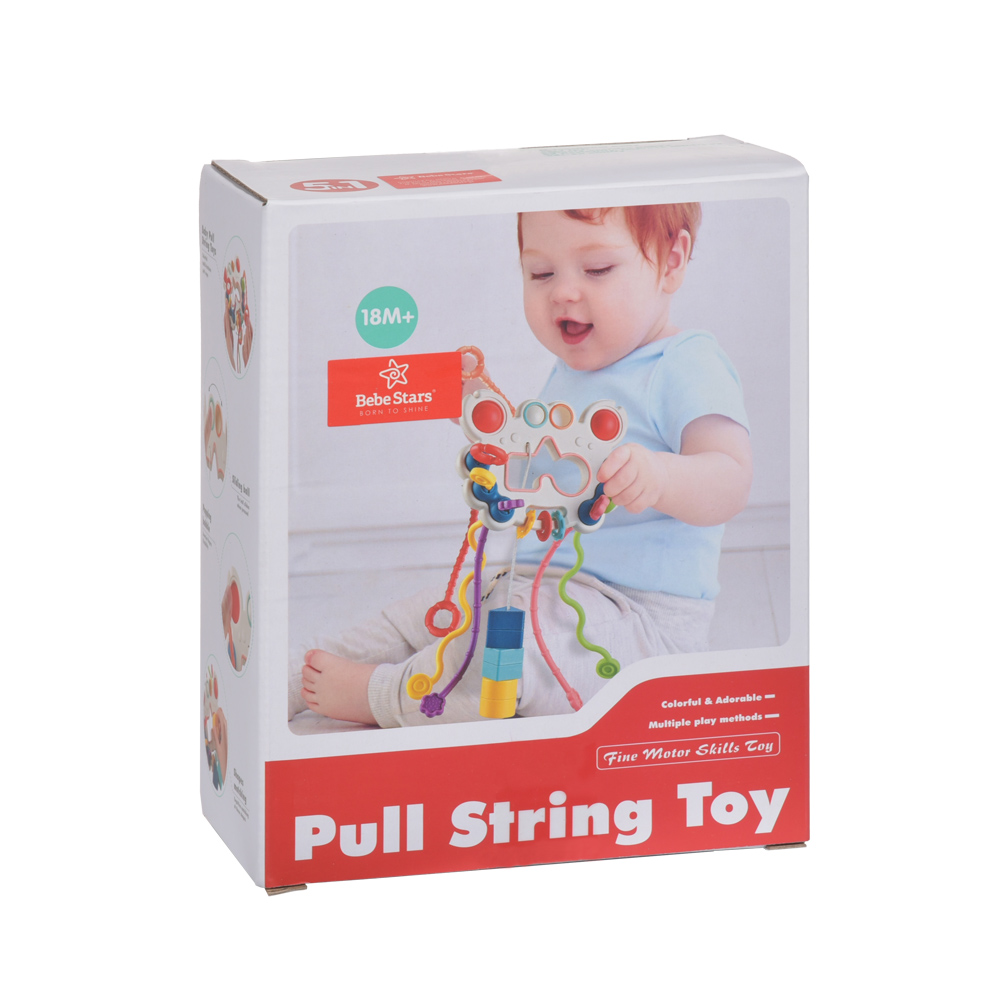 The butterfly toy is a multi-functional sensory toy, which can be used by children aged 18+ months. They can play in 5 different ways to exercise flexibility in their hands. They can pull the colorful soft ropes, pop bubbles, slide a ball, play with the dangling parts and match 3 shapes to the corresponding slots. Through the game they learn to distinguish shapes and colors.