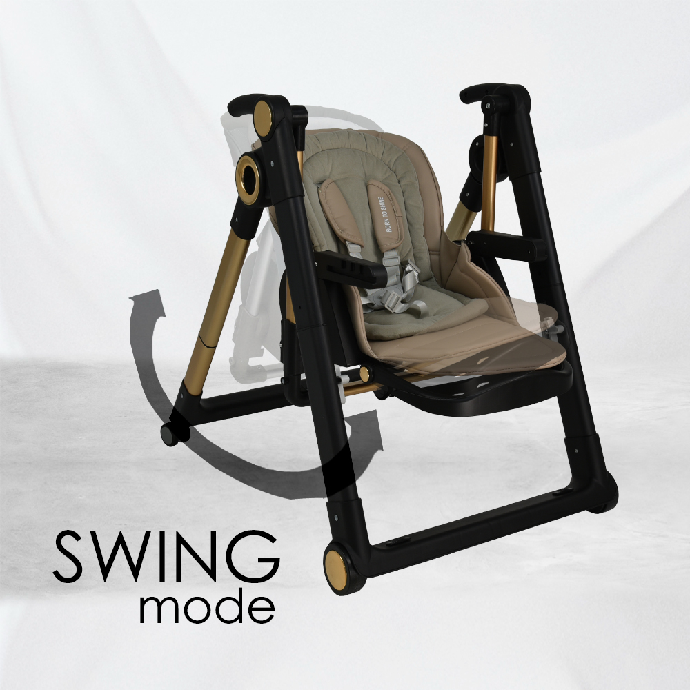 - Εύκολη μετατροπή σε κούνια. Στην λειτουργία κούνιας χρησιμοποιείτε πάντα τα φρένα!