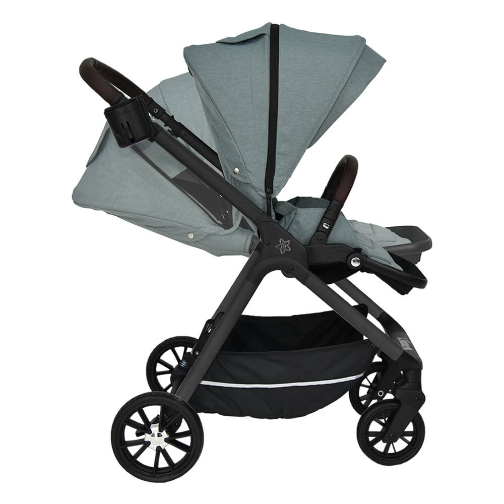 - Περιλαμβάνει ποδόσακο, κουνουπιέρα και αδιάβροχο, τα οποία προστατεύουν το παιδί από το κρύο, τα έντομα και τη βροχή.