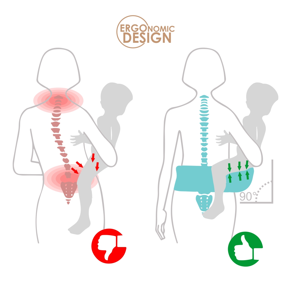 Προσφέρει τη σωστή υποστήριξη στα πόδια του μωρού και ενισχύει τη σωστή ανάπτυξη των μηρών-συνδέσμων, που είναι πολύ σημαντική στους πρώτους μήνες της ζωής των μωρών (hip-healthy από το Διεθνές Ινστιτούτο για τη δυσπλασία των μηρών).
