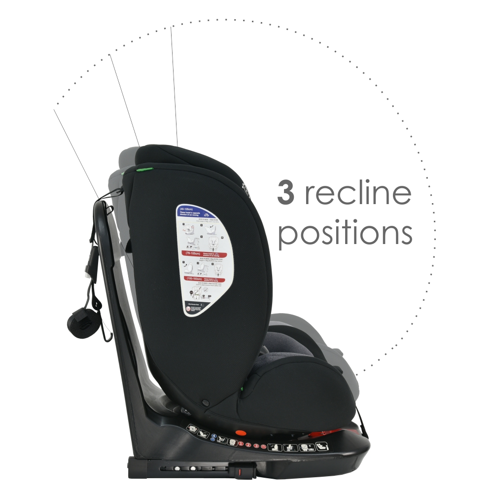 - Περιστροφή 360°, η οποία επιτρέπει την πλήρη ελευθερία στη περιστροφή του καθίσματος για μέγιστη ευκολία στην είσοδο και έξοδο του παιδιού σας από το αυτοκίνητο, χωρίς να καταπονείται η μέση σας.