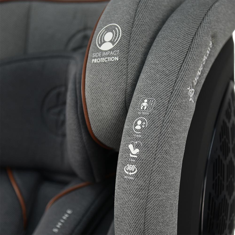 - Περιστροφή 360°, η οποία επιτρέπει την πλήρη ελευθερία στη περιστροφή του καθίσματος για μέγιστη ευκολία στην είσοδο και έξοδο του παιδιού σας από το αυτοκίνητο, χωρίς να καταπονείται η μέση σας.