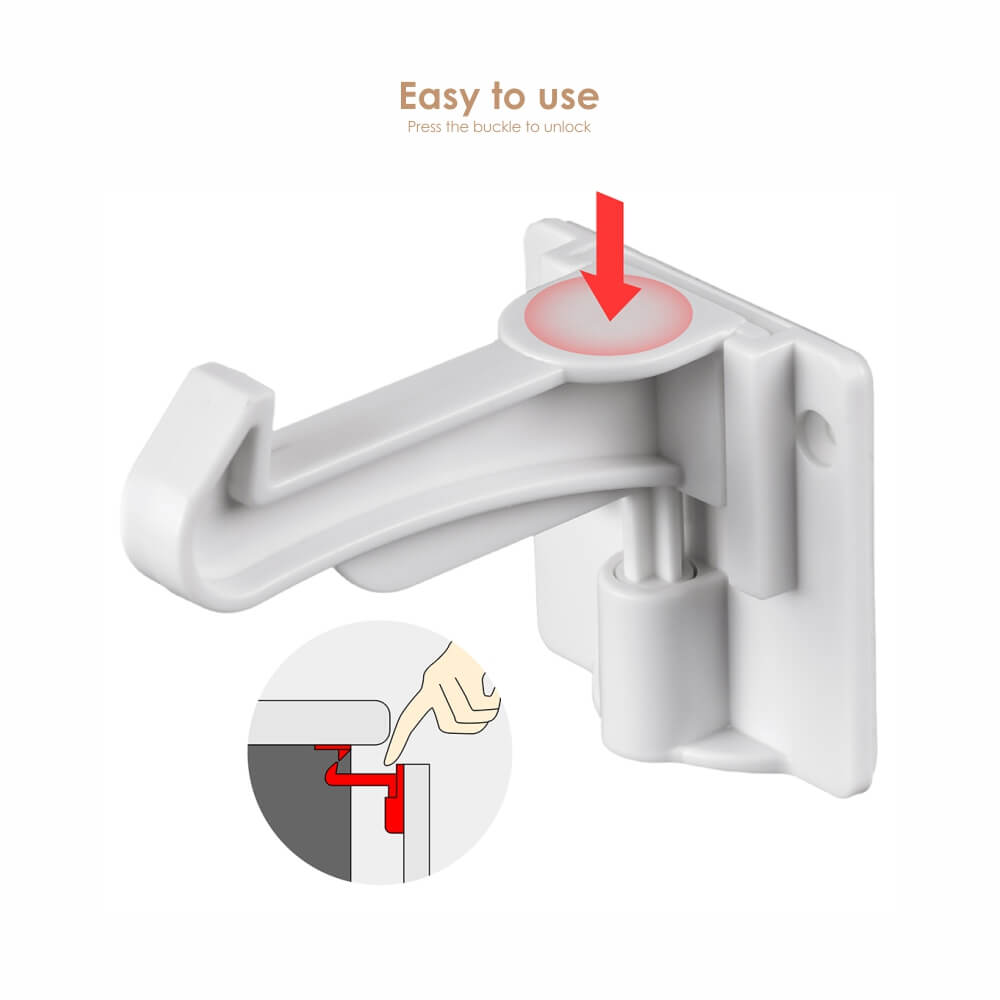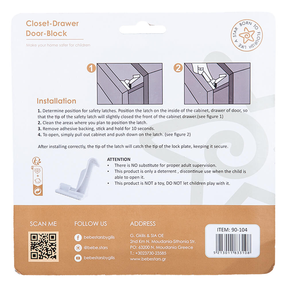 1) Προσδιορίστε τη θέση για τα μάνδαλα ασφαλείας. Τοποθετήστε το μάνδαλο στο εσωτερικό του ντουλαπιού, στο συρτάρι της πόρτας, έτσι ώστε η άκρη του μάνταλου ασφαλείας να κλείνει ελαφρώς το μπροστινό μέρος του συρταριού/του ντουλαπιού.