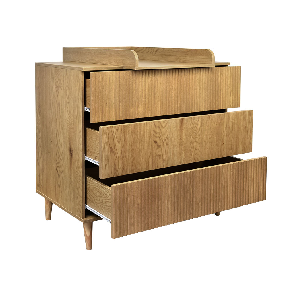 Τα τρία συρτάρια χωρίς λαβές ανοίγουν ομαλά , προσφέροντας άφθονο χώρο αποθήκευσης για όλα τα απαραίτητα είδη φροντίδας του παιδιού σας.