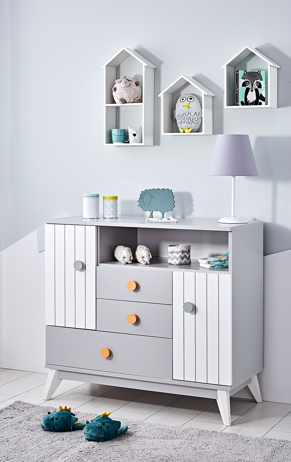 Η συρταριέρα Birdhouse με μοντέρνο σχεδιασμό και συνδιασμό αποχρώσεων λευκού ,γκρί και ξύλο, διαθέτει ράφι, συρτάρια και ντουλαπάκια, παρέχει επαρκή χώρο για όλα τα προϊόντα του μωρού σας.Μπορεί να συνδιαστεί με το προεφηβικό κρεβάτι ,OSLO, με τα βρεφικά κρεβάτια-κούνιες και με τα κρεβάτια Montessori διαβάστε περισσότερα