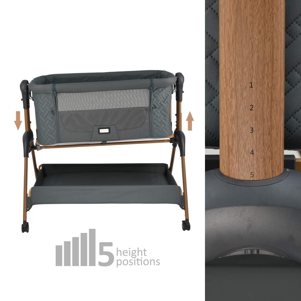 - Ρυθμιζόμενο ύψος σε 5 θέσεις για να προσαρμόζεται στο κρεβάτι σας, ώστε να έχετε το μωρό σας πάντα δίπλα σας.