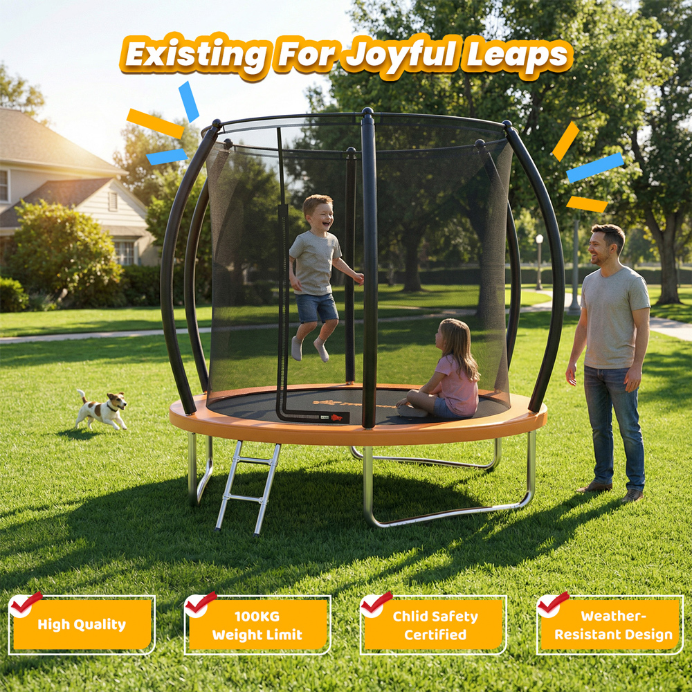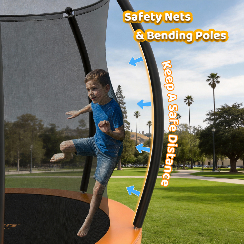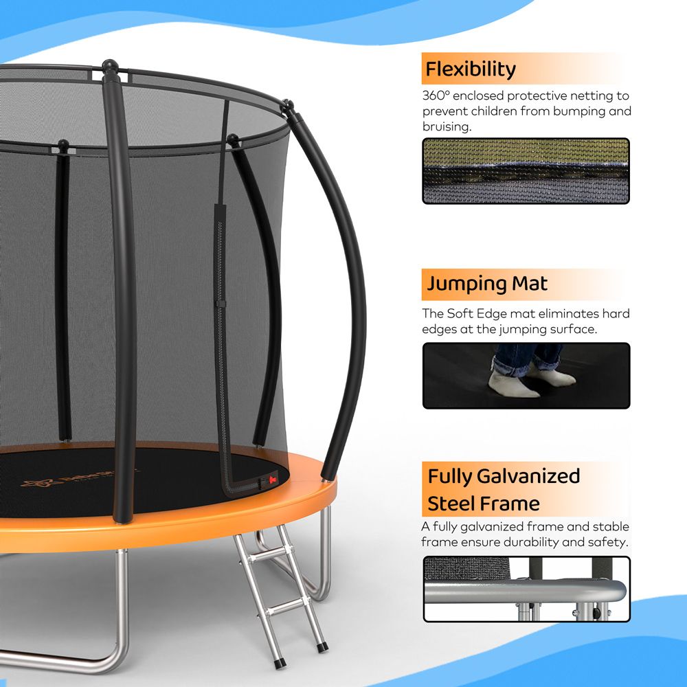 Το τραμπολίνο διαθέτει σκάλα για καλύτερη πρόσβαση και προστατευτικό δίχτυ, το οποίο εξασφαλίζει την απαιτούμενη ασφάλεια κατά τη χρήση.