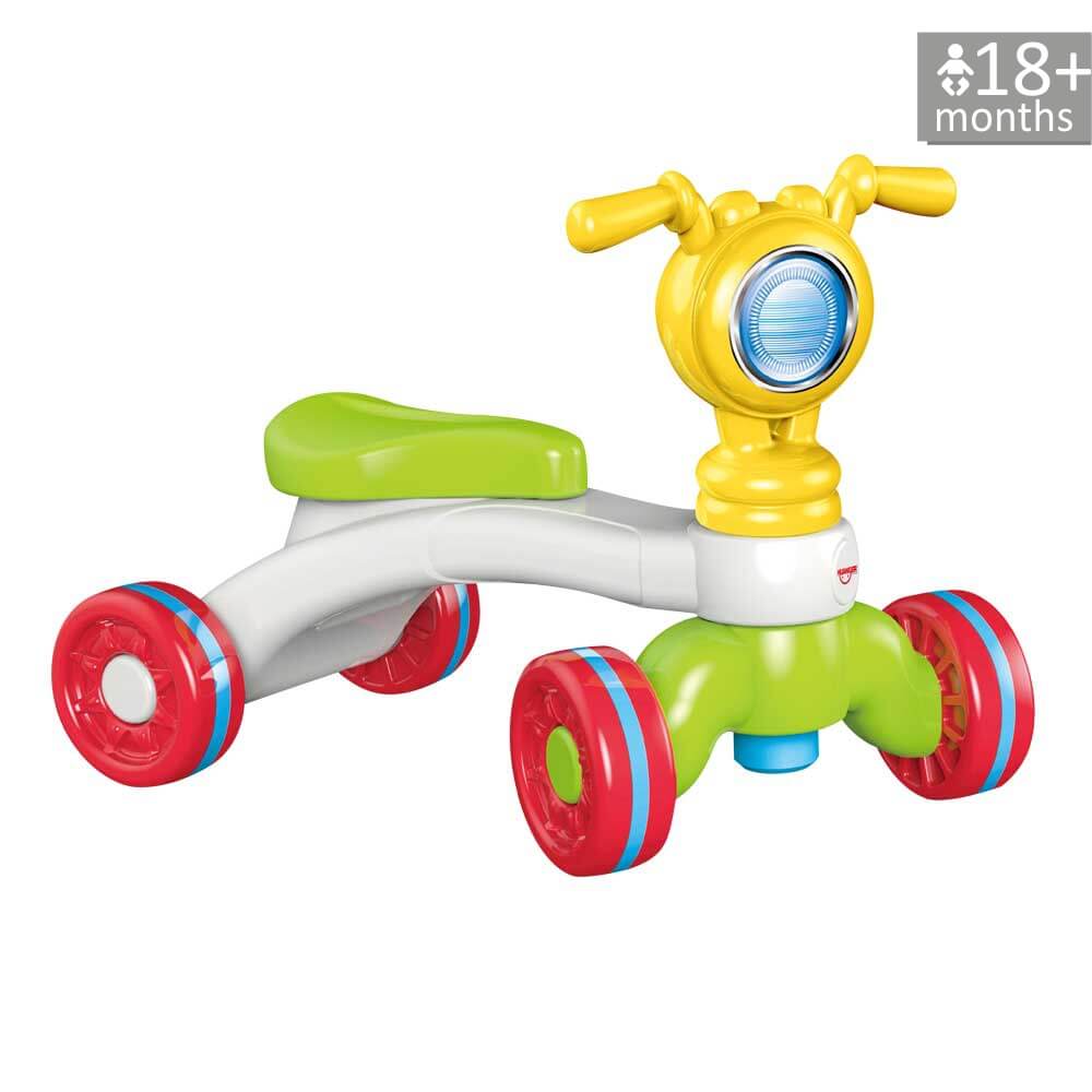 - Δίνει την δυνατότητα στο παιδί να κάτσει πάνω του και να μετακινηθεί στο χώρο χρησιμοποιώντας τα πόδια του, καθώς και να στηριχτεί στο τιμόνι ώσπου να καταφέρει να σταθεί όρθιο προκειμένου να περπατήσει.